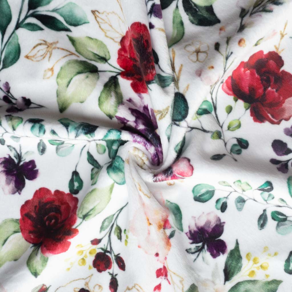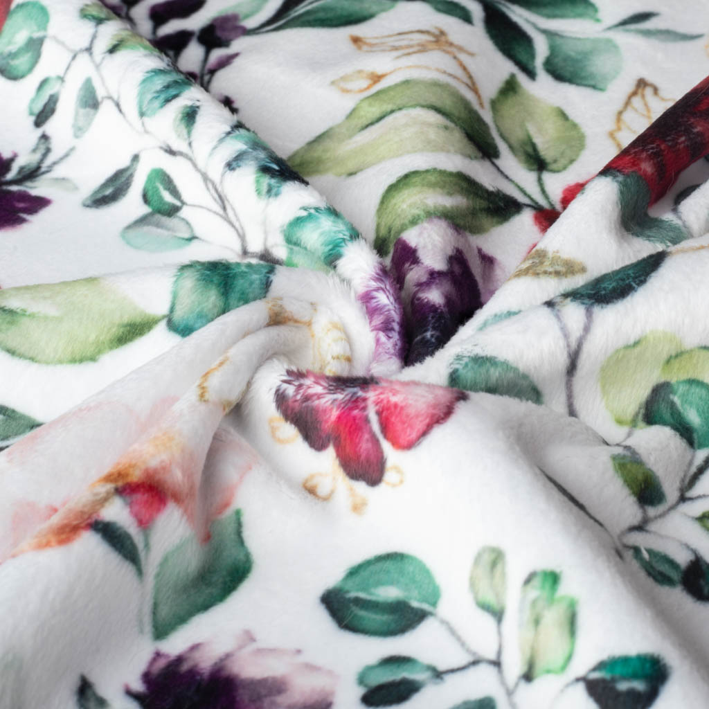 Der geblümte Plüsch hat eine Florlänge von 2,5 mm und ist somit das perfekte Allroundtalent für die verschiedensten Nähprojekte. Der außergewöhnliche Plüsch besitzt eine sehr weiche Oberfläche, die zum Kuscheln und Wohlfühlen einlädt. Auf der Rückseite des Plüschs befindet sich Strick, sodass er sich gut verarbeiten lässt.