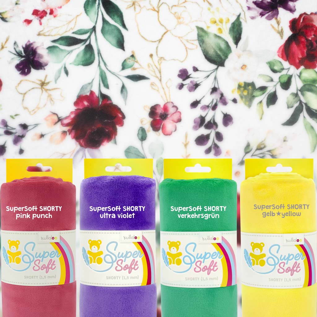 Der Plüsch Flora And Fauna Digital Cuddle® Multi lässt sich gut mit den kullaloo SuperSoft Plüschstoffen kombinieren! Besonders gut passen zum Beispiel SHORTY verkehrsgrün und SHORTY ultra violet.